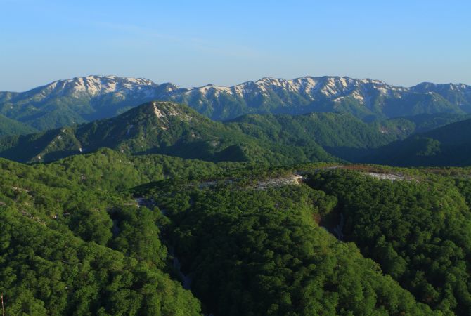 Neben den heimischen Buchen wachsen in den alten Wälder auch andere Arten von sommergrünen Bäumen. Auf einem Spaziergang über die Waldwege haben Sie die Chance, die Tierwelt zu beobachten, etwa Schwarzspechte, japanische Seraue, Nepalhaubenadler, Steinadler, Japanmakaken und Kragenbären.