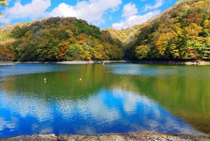 Wie eine Kette aus Edelsteinen liegen 33 juwelenfarbene Teiche und Seen in Shirakami Sanchi verstreut. Sie wurden gebildet, als ein gewaltiges Erdbeben einen Erdrutsch verursachte, und werden als Juniko oder Zwölf Seen bezeichnet, da bei ihrer Entstehung von dem zusammengebrochenen Berg aus nur zwölf sichtbar waren. Der berühmteste ist der kleine Aoike, der in einem strahlenden Kobaltblau schimmert.