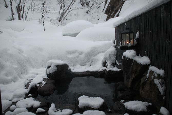 Aoni Onsen ist so abgelegen, dass Sie hier keinen Handyempfang haben. Die Bäder sind nur von Öllampen beleuchtet. Entspannen Sie sich an diesem zauberhaften Ort, an dem die Zeit stehengeblieben zu sein scheint.
