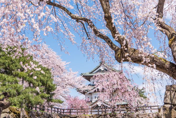 Ob Sie nun im Winter zum Schneelaternenfest , im Frühjahr zum Kirschblütenfest , im Sommer zum Neputa-Fest oder im Herbst mit seinem farbenprächtigen Laub kommen, die Burg Hirosaki und das zugehörige Gelände zeigen sich immer in voller Pracht. Die Renovierung der steinernen Fundamente, die etwa 2025 abgeschlossen sein soll, bietet Einblicke in die Bauweise japanischer Burgen.