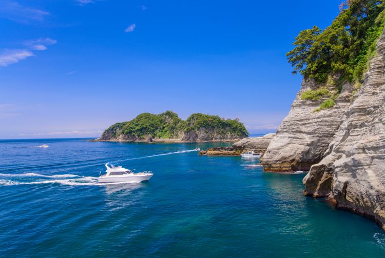 Touren mit dem Ausflugsschiff sind beliebt, da die Küste durch einen Vulkanausbruch und nachfolgende Erosion geformt wurde, wodurch Felstaschen und Höhlen entstanden sind, die vom Wasser aus erkundet werden können. Die Küste weiter hoch in Futo finden sich durch erstarrendes Magma entstandene seltsame Felsformationen, zu denen ein Wanderweg führt.
