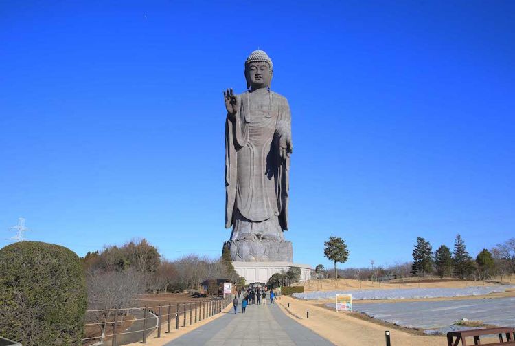 Ushiku Daibutsu wurde 1993 an einer Stätte erbaut, die mit Shinran in Verbindung gebracht wird, dem Gründer der buddhistischen Jodo-Shinshu-Sekte. Mit ihren 120 Metern (entspricht der Größe eines 38-stöckigen Gebäudes) und 4000 Tonnen zählt sie zu den größten Buddha-Statuen der Welt.