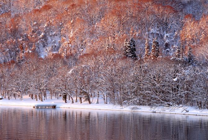 Wenn Sie Ihre Wanderung in Yakeyama starten, ist der Towada-See in Nenokuchi das Ziel. Wenn Sie dann noch bereit für weitere Abenteuer sind, sind in Nenokuchi zahlreiche Aktivitäten wie Angeln und Bootstouren auf dem See möglich. Vielleicht möchten Sie aber auch nach der Anstrengung in einem Restaurant entspannen und dort Gerichte mit Kokanee-Lachs und japanischen Stint probieren, die im Towada-Fluss gefangen wurde.