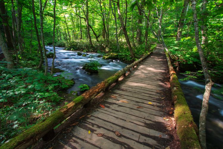 Der Oirase fließt vom Towada-See an der Grenze der Präfekturen Aomori und Akita aus durch die ebenso reizvolle Oirase-Schlucht. Wenn Sie hier entlangwandern oder mit dem Fahrrad fahren, verstehen Sie, warum der Fluss und die Schlucht seit Jahrhunderten eine Inspiration für Maler und Dichter sind.