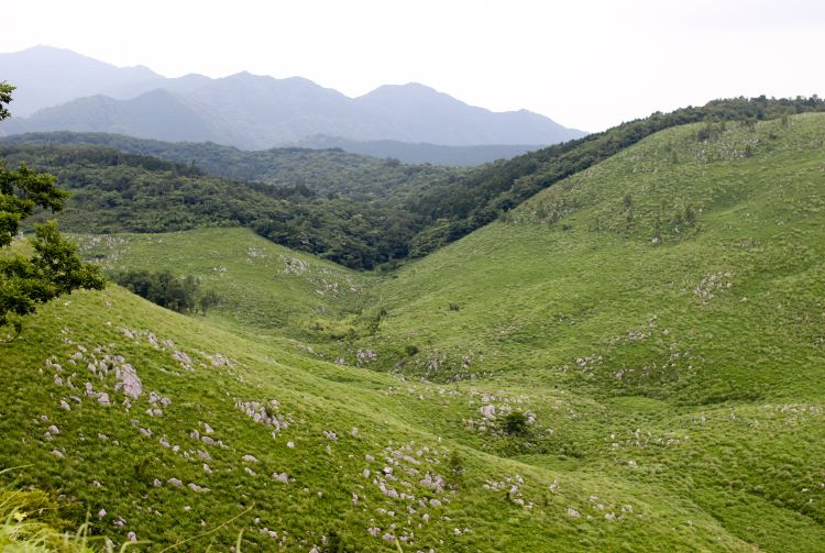 - Die Aussicht über die Akiyoshidai-Hochebene und die Karstlandschaft