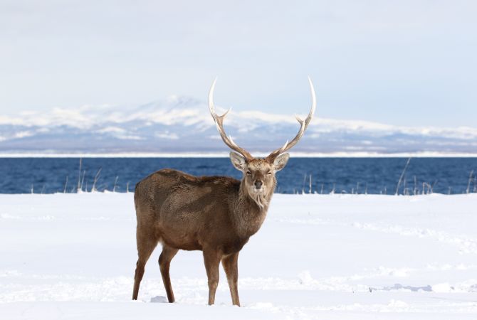 Bewundern Sie bei einem Spaziergang die dramatische Landschaft mit ihren versunkenen Wäldern, grasenden Rehen, Wildvögeln und heimischen Blumen. Nur ein paar Kilometer vor der Küste liegt die imposante Insel Kunashiri.