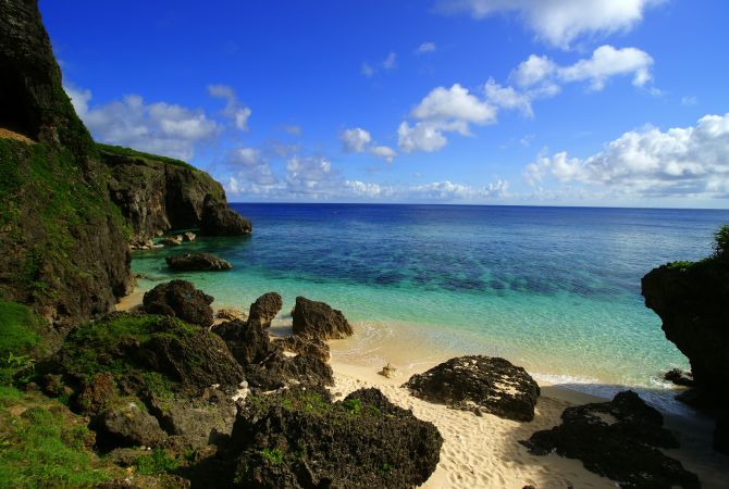 Der Rokujo-Strand ist klein (ca. 10 Quadratmeter). Er befindet sich im Nordosten von Yonaguni , der entlegensten der Okinawa-Inseln. Die Chancen stehen gut, dass Sie so etwas noch nie zu Gesicht bekommen haben, und sicher werden Sie alles – Aussicht, Klippen, Strand und Korallengarten – lange in Erinnerung behalten.