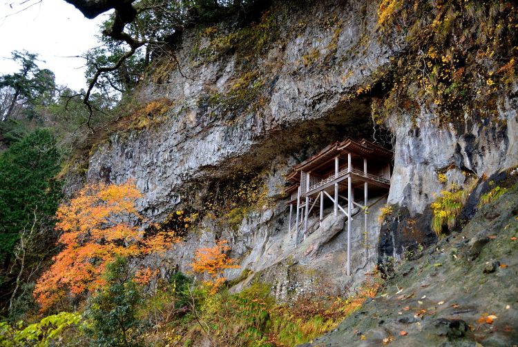 Der Weg führt weiter entlang steiler Grate und durch Bambushaine, bis Sie zur letzten Kurve kommen. Sie sehen dann den Nageiredo-Tempel am Eingang einer Höhle.