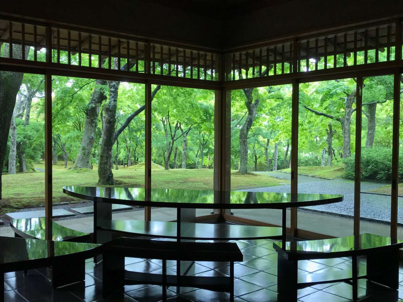 A view of the moss garden at Hakone Museum of Art from the Shinwatei Teahouse.
