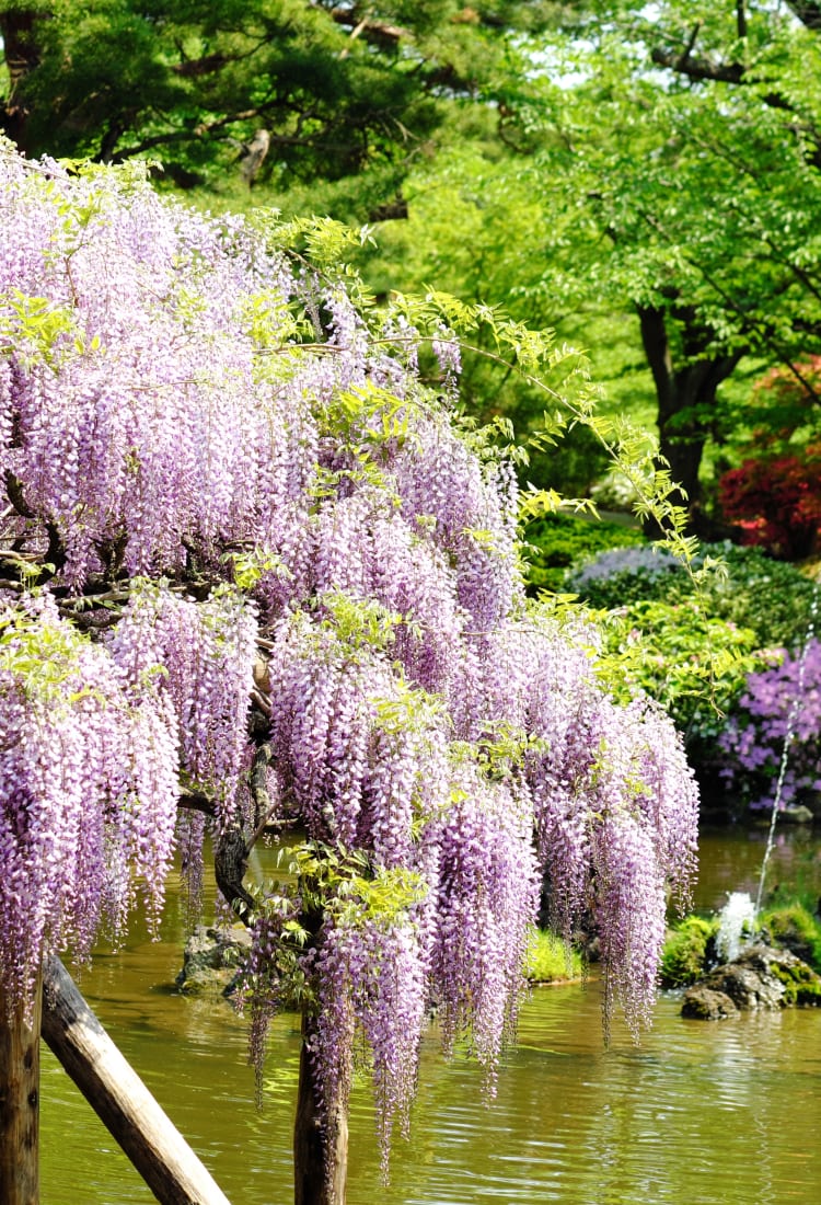 Senshu Park was once the site of Kubota Castle, built in 1604, which was burned down during the Meiji period (1868-1912). Now, only the moat, castle gate, and watchtower remain. The moat area has been repurposed and crafted into a series of ponds. Transforming with the seasons, the park becomes a sea of soft pink every spring with the cherry blossoms. Weeping wisteria also lend the park a regal air. Senshu Park is alive in the lush summer when the lotuses bloom, and turns fiery red in autumn with the changing of momiji maple leaves.
