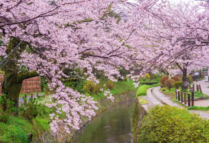 The Tetsugaku-no-michi or Philosopher’s Path is a very pleasant route that meanders alongside a cherry-tree-lined canal. It is especially popular for its gorgeous seasonal flowers and autumn colors that tint the Higashiyama hills.