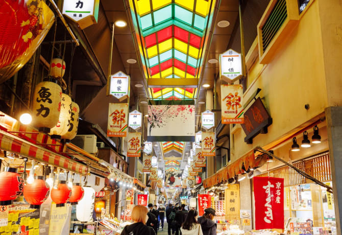 For foodies, there is no better place than Nishiki Market , nicknamed “Kyoto’s Kitchen.” You can find an astonishing variety of vendors packed into this narrow 400-meter-long passageway, peddling everything from tofu doughnuts and quail eggs, to fine ceramics and kitchenware.Despite the crowding at peak times, the market continues to attract locals too.