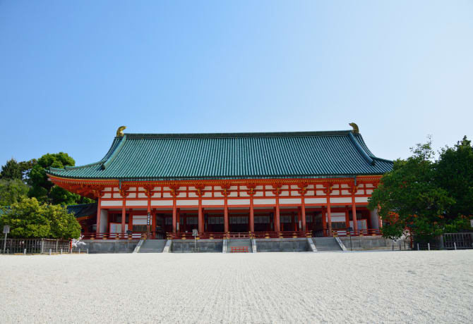 Heian-jingu can be thought of a consolation present of sorts: it was built after the imperial court was moved to Tokyo, to commemorate 1,100 years of Kyoto’s founding. Enshrined here in the shrine are the first and last emperors to have reigned from Kyoto itself. The large open courtyard provides wonderful acoustics for the performances here through the year, such as the Takigi Noh (Noh Theater by firelight) in June.