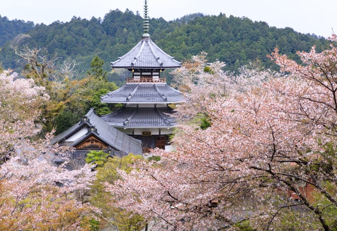 Another registered World Heritage site, this shrine is the subject of legend. It is dedicated to the aforementioned emperor and tragic figure, Go-Daigo. And with gorgeous views of the surrounding mountainside, you will soon discover why the 16th-century warlord Toyotomi Hideyoshi held a hanami “blossom-viewing” party here.