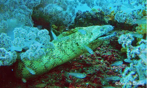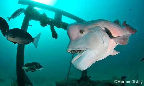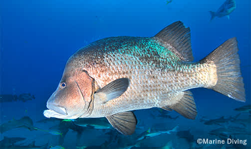 One of the most unique dive sites in Japan, famous for its underwater shrine and the friendly bulgyhead wrasse that lives there. Sunfish and whale shark can also be seen here on occasion.