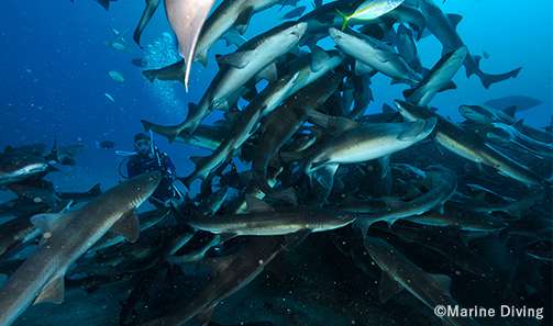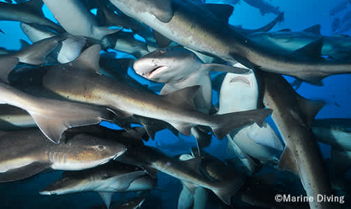 Hundreds of banded houndsharks creating a tornado in Ito.