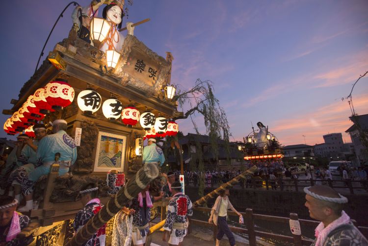 The best times to visit Sawara are during the Sawara Grand Festival, a festival held twice a year in July and October. During the festival, floats topped with giant dolls representing legendary warriors and heroes parade through the town. Another good time to visit is for the Ayame Matsuri, which celebrates Sawara's blooming irises.