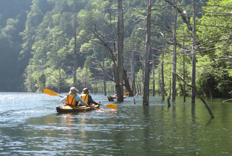 Lake Shizenko is one of Nagano's most remote, and unique, kayaking experiences. The lake was created by a 1984 earthquake when a massive landslide from Mt Ontake dammed a part of the Otaki River.