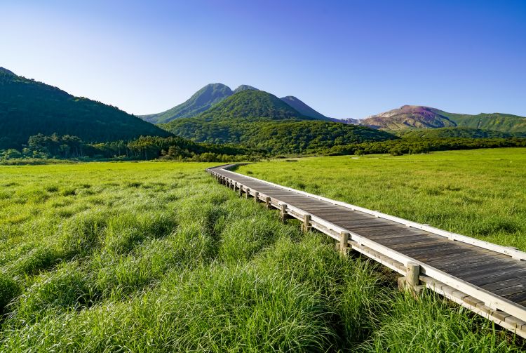 The Kuju mountains offer trails up to peaks such as Mt. Hosho and Mt. Mimata, with some of the routes requiring a full day to cover. Many of the paths are suitable for all ages, however.