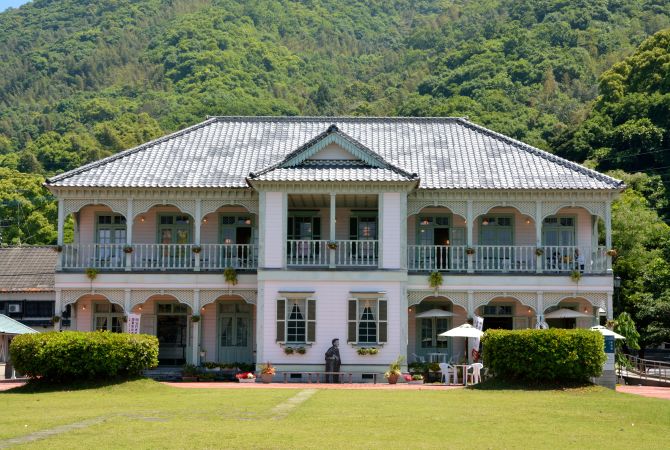 The old hotel, now a cafe and historical dress rental store, was a favorite of Lafcadio Hearn, a writer who was enamored with the area in the 1890s. The waterside is a picturesque place for a stroll. If you fancy more of a hike, pick up a tourist leaflet detailing the forest walk that loops up into the hills, giving a commanding view down to the port, bay, and mountains beyond.