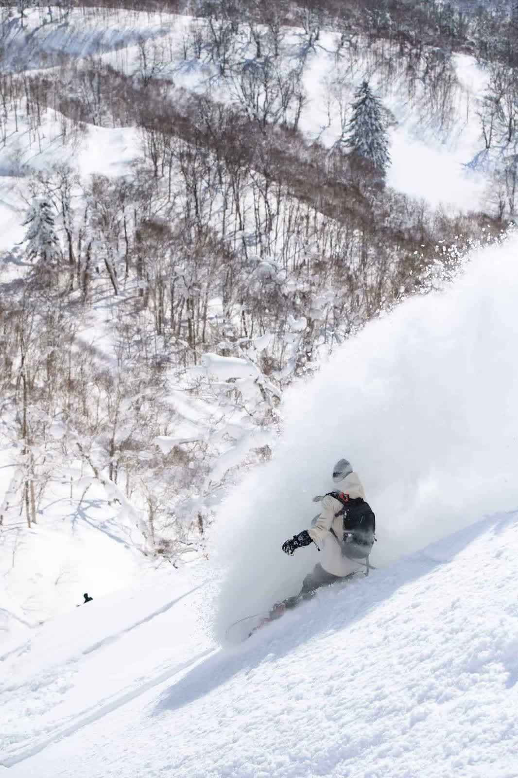 Neil snowboarding down the slopes of Rusutsu Resort, Hokkaido