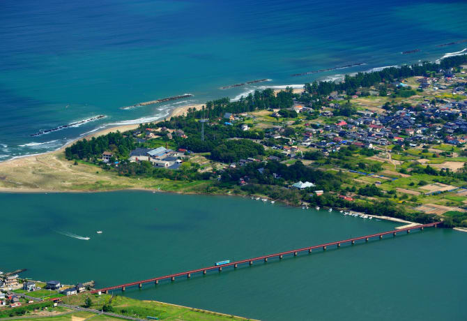 Amanohashidate, en la bahía de Miyazu, es un banco de arena cubierto de pinos que se formó como resultado del deslizamiento de la arena y pedruscos del río por la corriente oceánica y que terminó moldeando un trecho de tierra casi en línea recta. Camina por la arena a orillas de la bahía para contemplar esta maravilla de la naturaleza. Si tienes tiempo, visita el puente giratorio Kaisen-kyo, que conecta Amanohashidate la parte continental.
