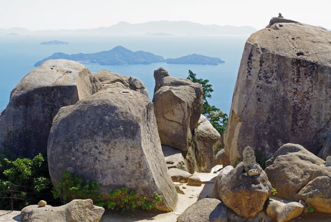 Además de su importancia cultural y espiritual, Miyajima fue inscrita como Patrimonio Cultural de la Humanidad en el año 1996 en reconocimiento a los bosques primitivos del monte Misen . Hay numerosos megalitos a lo largo del sendero del monte y en la cima. Cuando las condiciones son favorables, se puede contemplar la belleza de las numerosas islas que salpican el mar interior de Seto desde la cima.