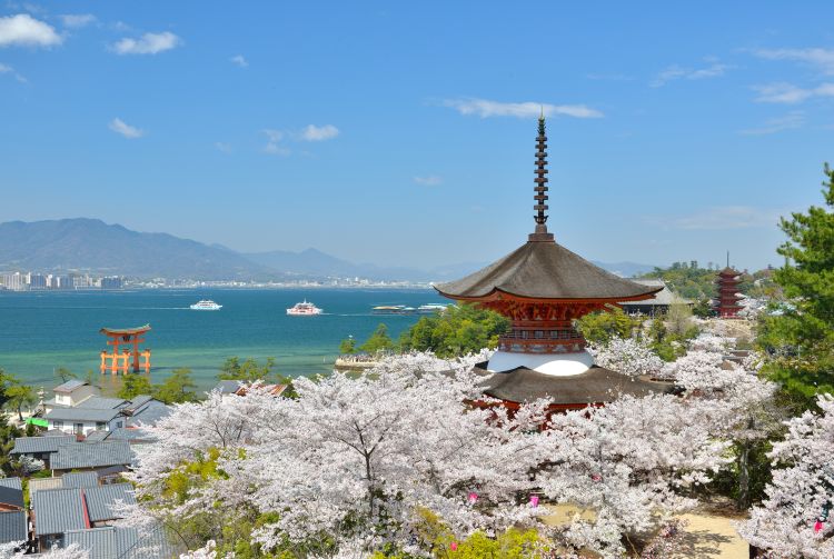 - La puerta flotante Otorii del santuario de Itsukushima, símbolo de Miyajima