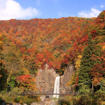 Les visiteurs affluent au parc Yahiko en cette saison afin d'admirer les feuilles d'érable aux couleurs éclatantes. C'est également la saison de la récolte du riz et des bains dans les nombreuses sources chaudes de la préfecture.
