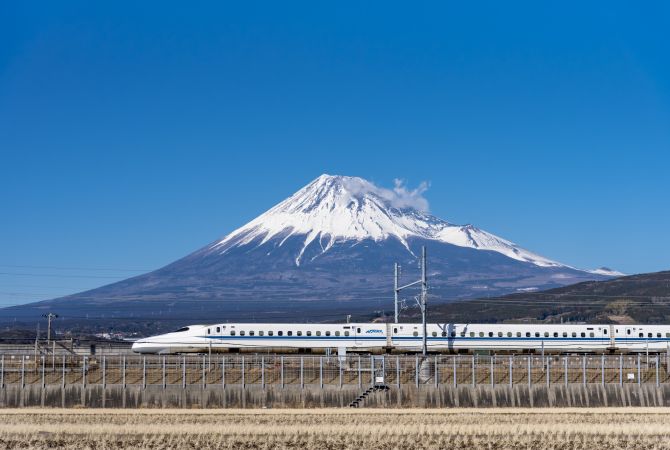 Dans le shinkansen ou en voiture, entre Tokyo et la région du Kansai (depuis Tokyo, asseyez-vous à droite ; depuis le Kansai, asseyez-vous à gauche)