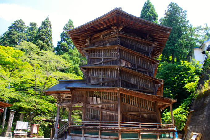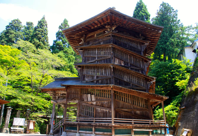 Construit en 1796, Aizu Sazaedo est un temple hexagonal à trois niveaux, de 16,5 mètres de haut, se trouvant à une courte distance de marche du mont Iimori. C'est l'une des structures architecturales les plus inhabituelles au monde — vous y montez par un escalier sans marches et vous devez emprunter des chemins différents pour monter et descendre. Un parcours dans Sazaedo est censé symboliser le pèlerinage de Saigoku Kannon, un circuit reliant 33 temples bouddhistes.
