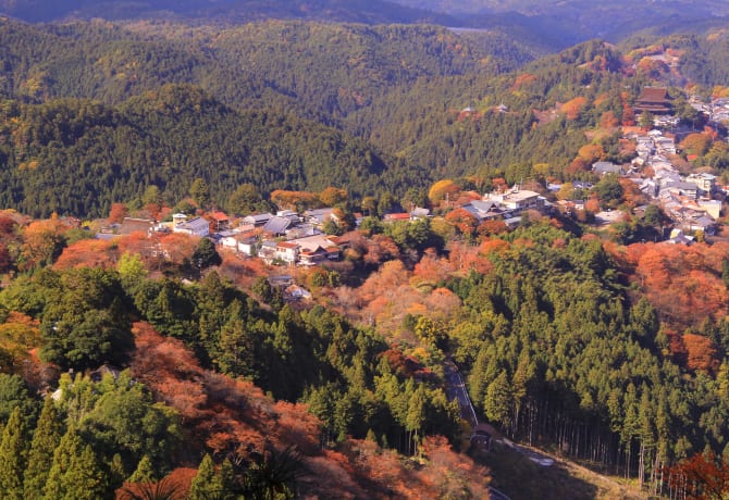 Vous visiterez de nombreux sanctuaires et temples sur le mont Yoshino , construits plus d'un siècle auparavant, y compris un palais impérial du XIVe siècle et un pavillon Zao-do de 34 mètres de haut. Peut-être aurez-vous la chance d'apercevoir certains praticiens de la mystérieuse religion Shugendo, ou du moins entendrez-vous l'écho de leurs conques dans les collines.