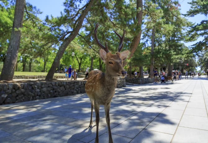 Avec le mont Yoshino , l'ancienne capitale de Nara est l'un des plus grands sites du pays pour admirer les cerisiers en fleurs. Le temple Todaiji, le sanctuaire de Kasuga Taisha et le temple Kofukuji sont rassemblés dans le parc de Nara .