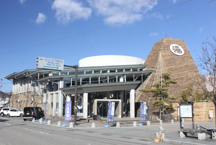 Bien qu'il y ait un grand nombre d'hôtels ryokan dans la région d'Awara, une journée suffit pour profiter des sources d'eau chaude de la région. À quelques minutes à pied de la gare d'Awarayunomachi se trouve Saintpia Awara, une installation à cet effet. Découvrez les plaisirs du bain de Tennoyu et de Chinoyu à Saintpia pour seulement 500 yens.
