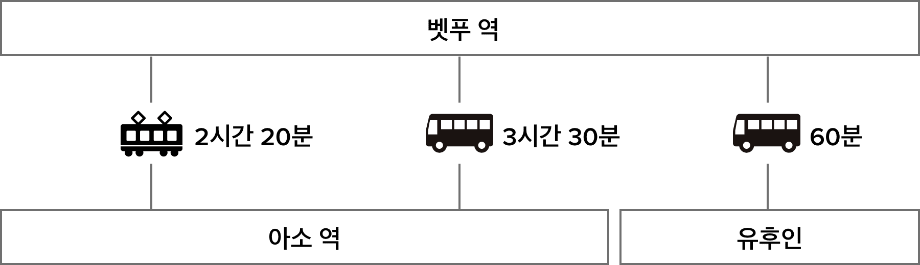 | 벳푸에서 오시는 경우: | 1시간~3.5시간 |