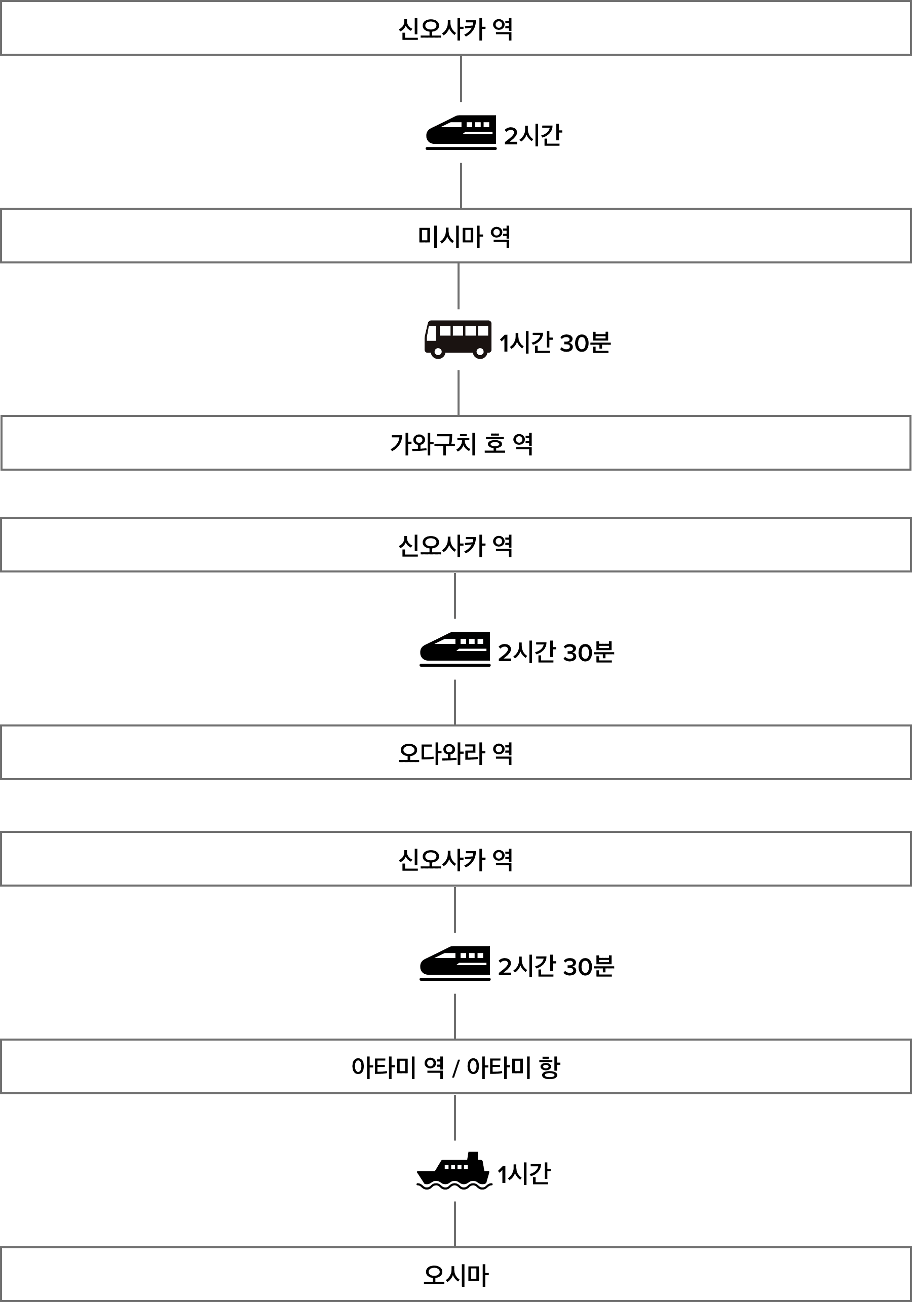 | 오사카에서 오시는 경우: | 3.5시간~6시간 |