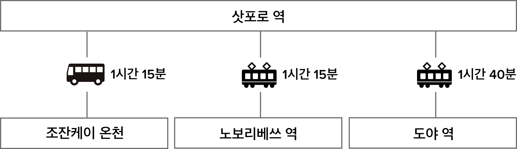 | 삿포로에서 오시는 경우: | 1시간에서 2시간 |
