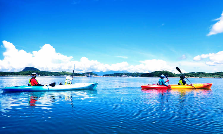 Make an early start to join a sea kayaking tour around the Amakusa Islands. On a half-day Amakusa Island Kayak Tour, you can paddle around uninhabited islands with exposed ancient stone strata and otherwise unreachable secret coves. The view of Mount Unzen from sea level is particularly impressive. Help conserve the beautiful marine environment by collecting trash that has washed up on the shore. After lunch, stroll along Amakusa’s beaches, join a dolphin-watching cruise, or drive to Kumamoto City.