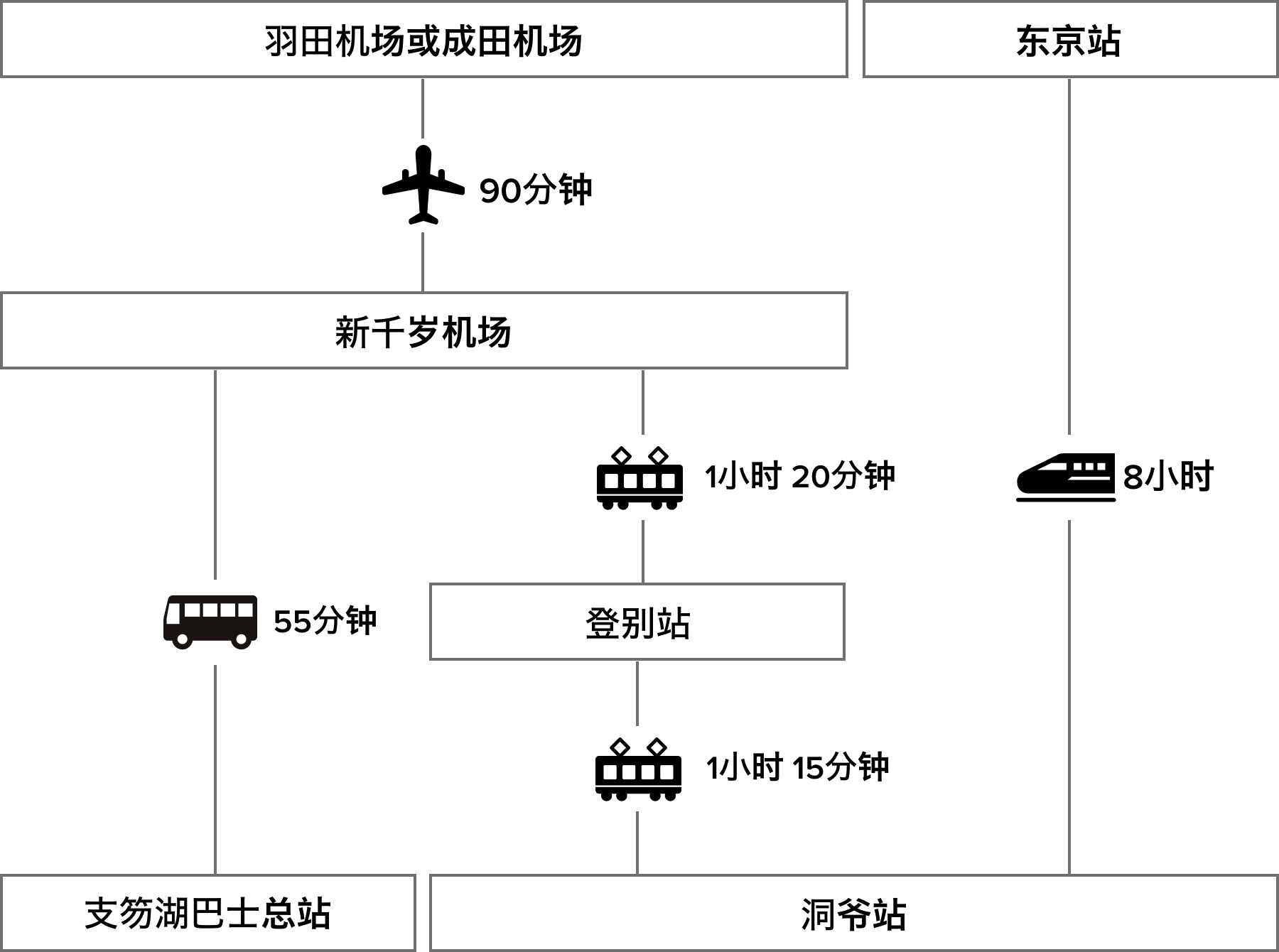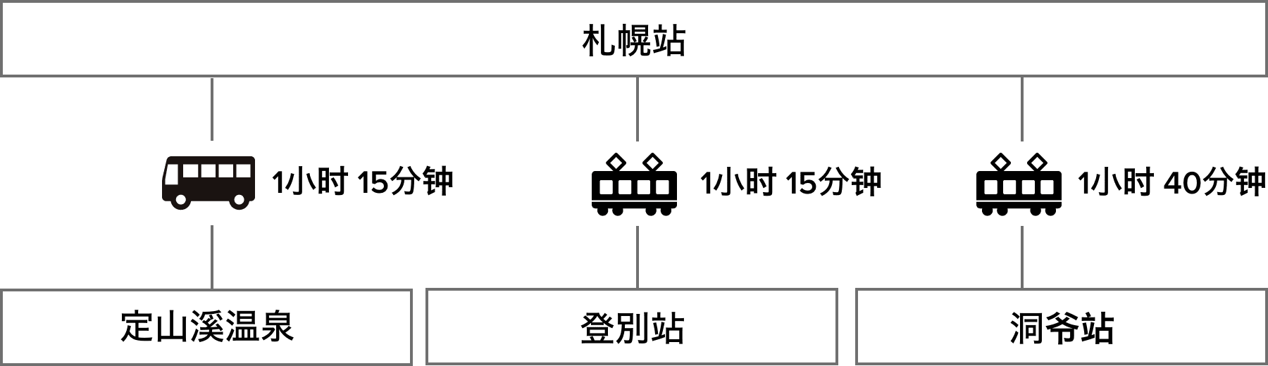 | 从札幌出发: | 1-2 小时 |